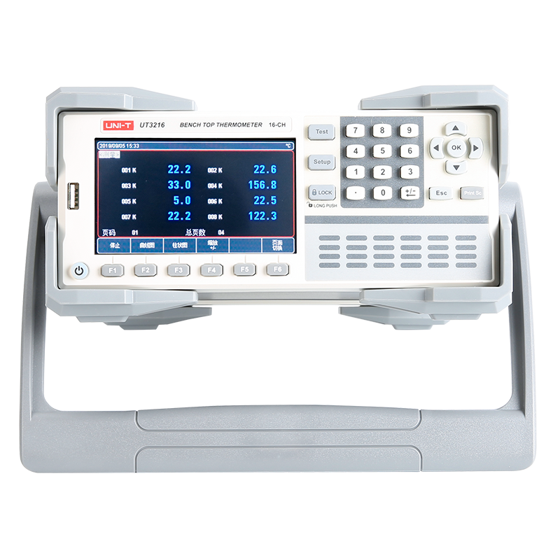 本系列产品采用4.3英寸液晶显示屏,仪器支持-200℃~1800℃的测试范围,支持J,K,T,E,S,N,B,R型热电偶输入。可同时对多路温度数据进行采集,具有直观数值读数,柱形图和曲线图形显示方式, 使用者可以多方式读取各参数, 也可以把数据记录在USB存储器上,同时仪器也具有上超下超报警和通讯传输。其完善的功能、优越的性能和操作简单的特点,能大量满足生产、实验室和研发测量的需求。仪器支持USB实时存储采样数据,用户可以对每路数据进行独立校正。同时标配RS232和USB通讯接口,通过标配的计算机软件可实现数据采集,分析和打印。