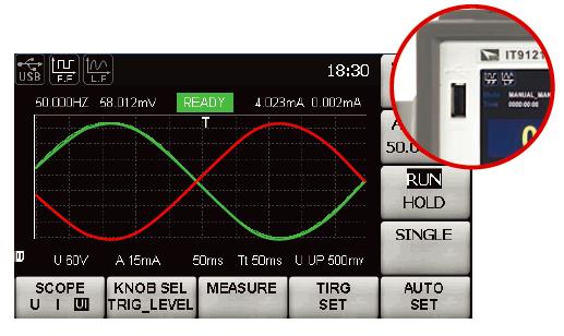 IT9100功率分析仪的示波功能可以让用户在测试家用电器性能时,直接观察电压、电流和功率趋势显示中的波动,并可设置显示趋势、波形、数值,柱状图。并通过外围USB存储接口,直接抓取波形和记录数值,无需再外接示波器.